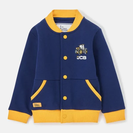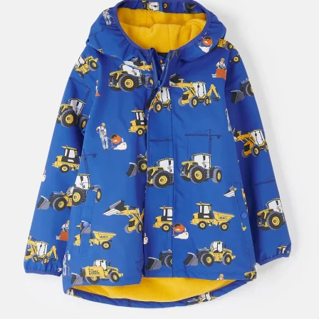 Featuring bold hand-drawn JCB tractor artwork, contrasting yellow and navy panels, and practical details like waist pockets and a sturdy front zip, this hoodie is as stylish as it is functional.